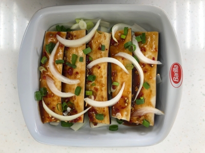 茄子是一道很难料理的食材,尤其防氧化的前置作业可是不能少,利用高温烘烤的过程,让茄子亦能吸附酱汁咸甜的滋味,搭配洋葱一起食用,备感清爽。