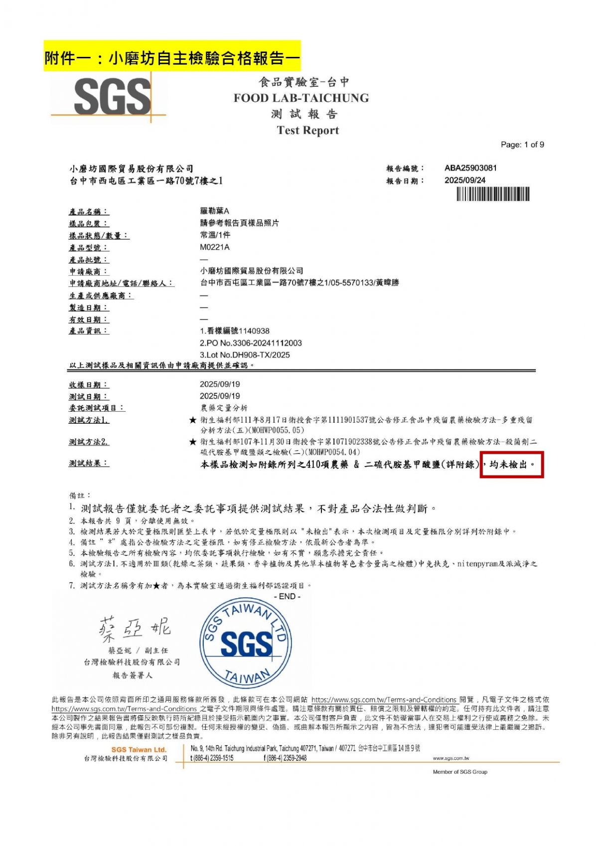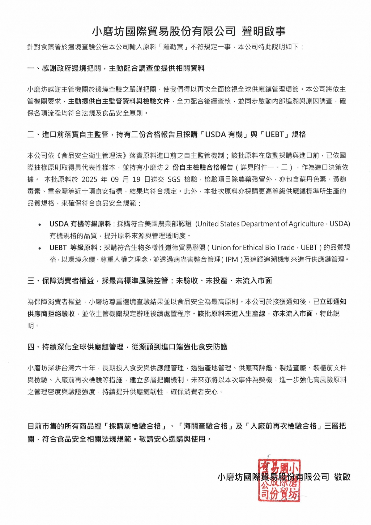 2026年1月羅勒葉邊境檢驗聲明啟事