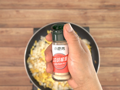 起鍋前加上辛香白胡椒鹽調味,開大火再炒片刻。
